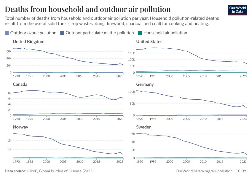 Hannah Ritchie and Pablo Rosado (2025) - “Air pollution kills millions every year — where does it come from?” Published online at OurWorldinData.org. Retrieved from: 'https://country-profiles-in-search.owid.pages.dev/air-pollution-sources' [Online Resource]BibTeX citation
