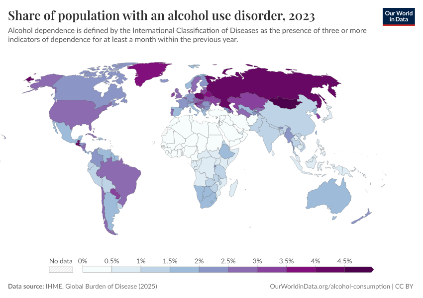 Hannah Ritchie and Max Roser (2022) - “Alcohol Consumption” Published online at OurWorldinData.org. Retrieved from: 'https://country-profiles-in-search.owid.pages.dev/alcohol-consumption' [Online Resource]BibTeX citation