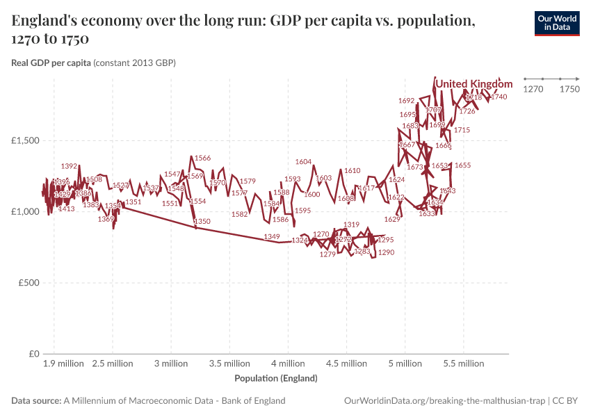 Max Roser (2020) - “Breaking out of the Malthusian trap: How pandemics allow us to understand why our ancestors were stuck in poverty” Published online at OurWorldinData.org. Retrieved from: 'https://country-profiles-in-search.owid.pages.dev/breaking-the-malthusian-trap' [Online Resource]BibTeX citation