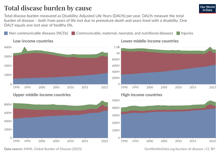 Max Roser, Hannah Ritchie, and Fiona Spooner (2021) - “Burden of Disease” Published online at OurWorldinData.org. Retrieved from: 'https://country-profiles-in-search.owid.pages.dev/burden-of-disease' [Online Resource]BibTeX citation