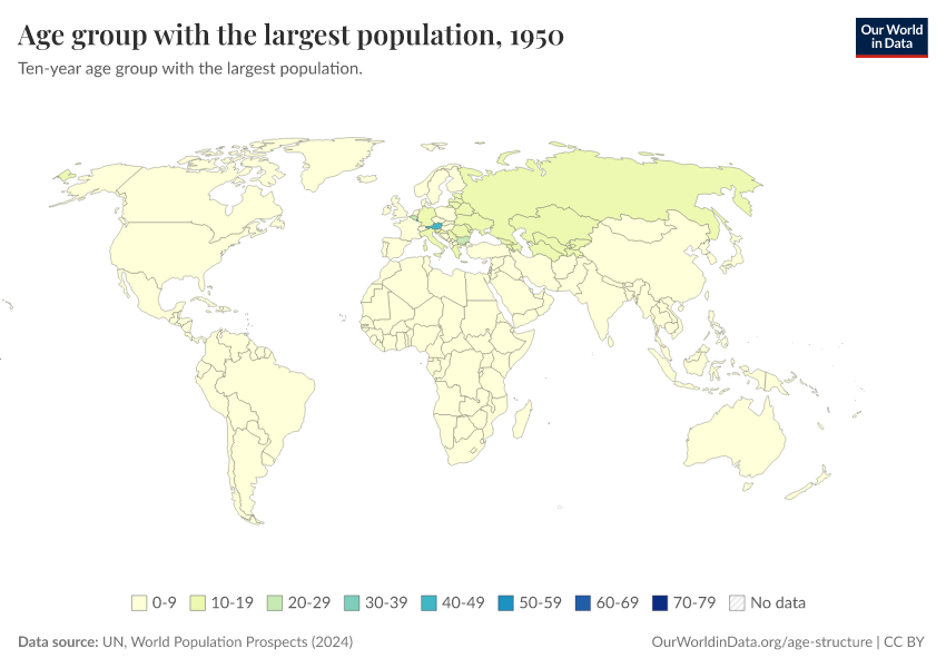 “Data Page: Ten year age-group with the highest population”. Our World in Data (2026). Data adapted from United Nations. Retrieved from https://country-profiles-in-search.owid.pages.dev/grapher/age-group-with-the-largest-population [online resource]How to cite this data