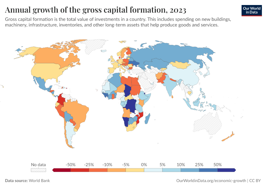 World Bank – processed by Our World in Data. “Annual growth of the gross capital formation” [dataset]. World Bank, “World Bank national accounts data, and OECD National Accounts data files.” [original data]. Retrieved March 3, 2026 from https://country-profiles-in-search.owid.pages.dev/grapher/annual-growth-of-the-gross-capital-formation