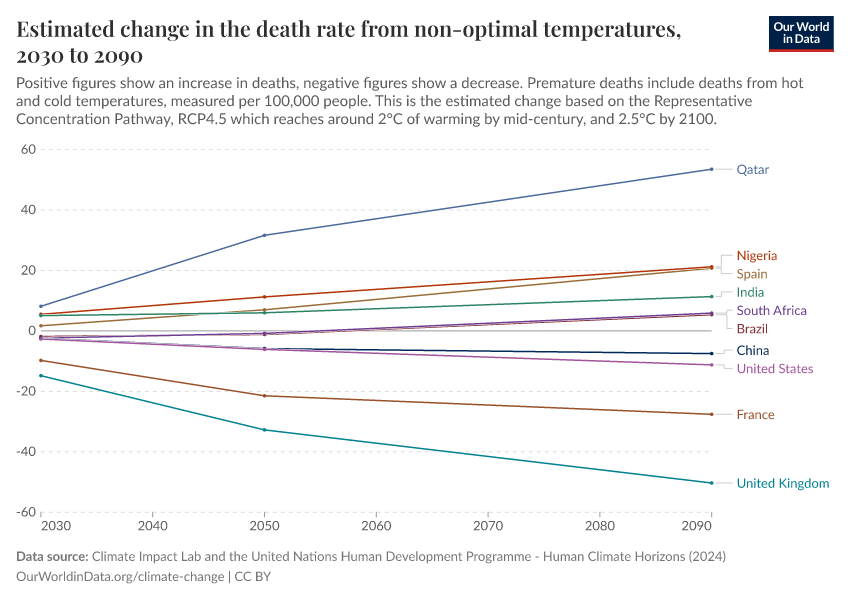 “Data Page: Estimated change in the death rate from non-optimal temperatures”. Our World in Data (2026). Data adapted from Climate Impact Lab and the United Nations Human Development Programme. Retrieved from https://country-profiles-in-search.owid.pages.dev/grapher/change-heat-death-rate [online resource]How to cite this data