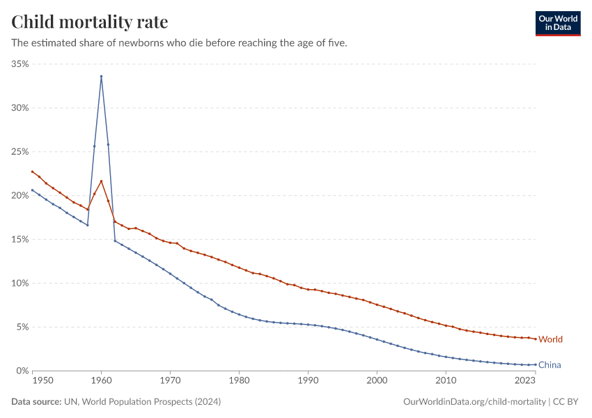 “Data Page: Child mortality rate, ages 0-4”. Our World in Data (2026). Data adapted from United Nations. Retrieved from https://country-profiles-in-search.owid.pages.dev/grapher/child-mortality-around-the-world [online resource]How to cite this data