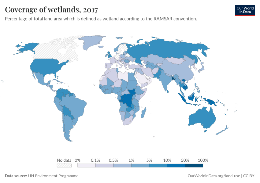“Data Page: Coverage of wetlands”. Our World in Data (2026). Data adapted from UN Environment Programme. Retrieved from https://country-profiles-in-search.owid.pages.dev/grapher/coverage-of-wetlands [online resource]How to cite this data