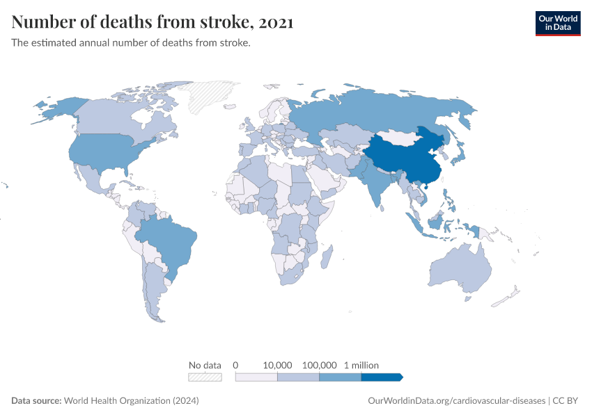 World Health Organization (2024) – with major processing by Our World in Data. “Number of deaths from stroke” [dataset]. World Health Organization, “Global Health Estimates” [original data]. Retrieved March 3, 2026 from https://country-profiles-in-search.owid.pages.dev/grapher/deaths-from-strokes-ghe
