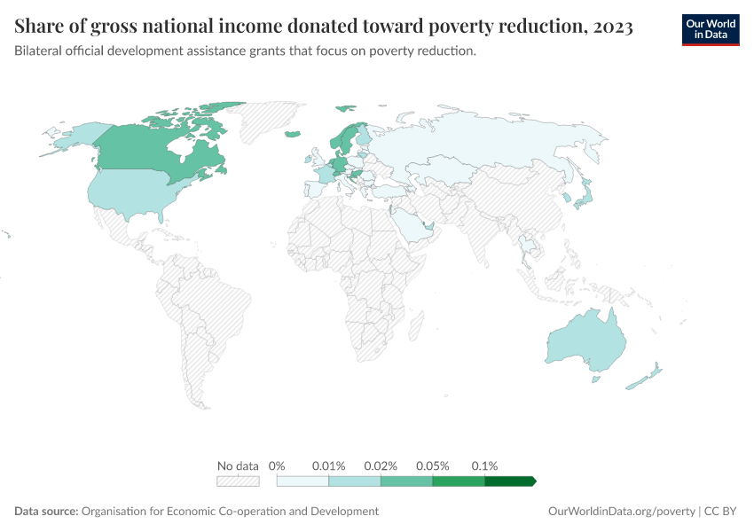 “Data Page: Share of gross national income donated toward poverty reduction”. Our World in Data (2026). Data adapted from Organisation for Economic Co-operation and Development. Retrieved from https://country-profiles-in-search.owid.pages.dev/grapher/donated-official-development-assistance-grants-for-poverty-reduction [online resource]How to cite this data