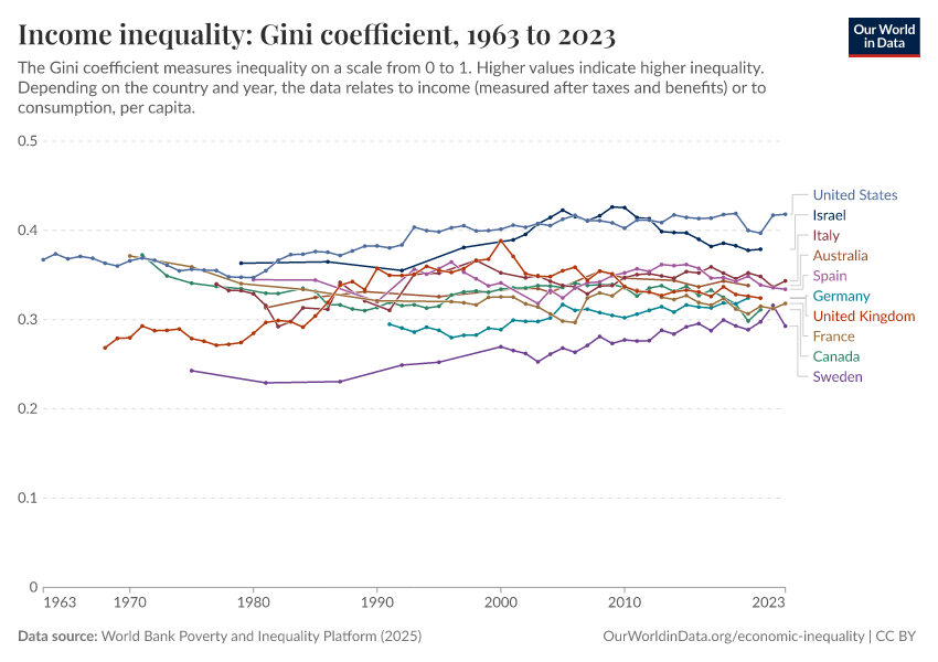 World Bank Poverty and Inequality Platform (2025) – with major processing by Our World in Data. “Income inequality: Gini coefficient – World Bank” [dataset]. World Bank Poverty and Inequality Platform, “World Bank Poverty and Inequality Platform (PIP) 20250930_2021, 20250930_2017” [original data]. Retrieved March 3, 2026 from https://country-profiles-in-search.owid.pages.dev/grapher/economic-inequality-gini-index