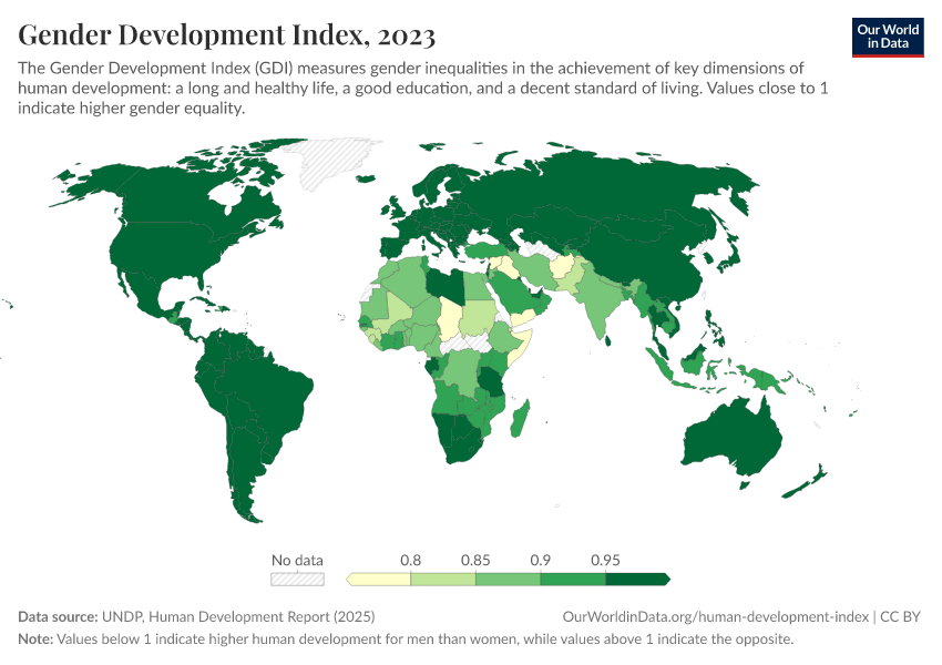 “Data Page: Gender Development Index”. Our World in Data (2026). Data adapted from UNDP, Human Development Report. Retrieved from https://country-profiles-in-search.owid.pages.dev/grapher/gender-development-index [online resource]How to cite this data
