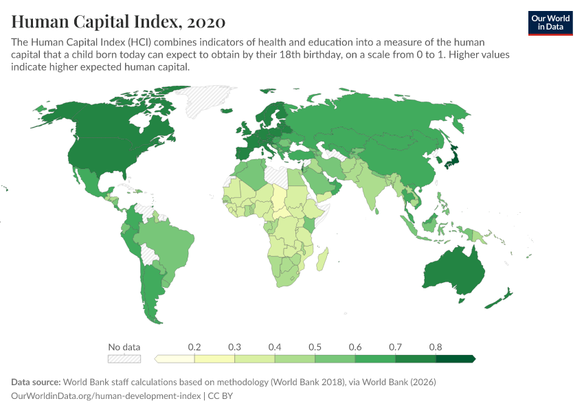 “Data Page: Human Capital Index”. Our World in Data (2026). Data adapted from World Bank staff calculations based on methodology (World Bank 2018), via World Bank. Retrieved from https://country-profiles-in-search.owid.pages.dev/grapher/human-capital-index-in-2018 [online resource]How to cite this data