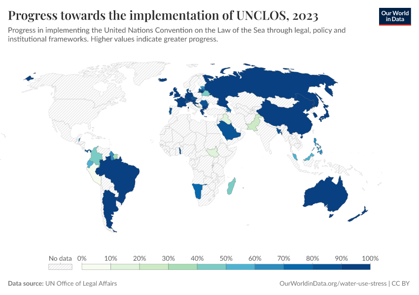 “Data Page: Progress towards the implementation of UNCLOS”. Our World in Data (2026). Data adapted from UN Office of Legal Affairs. Retrieved from https://country-profiles-in-search.owid.pages.dev/grapher/implementation-of-unclos [online resource]How to cite this data