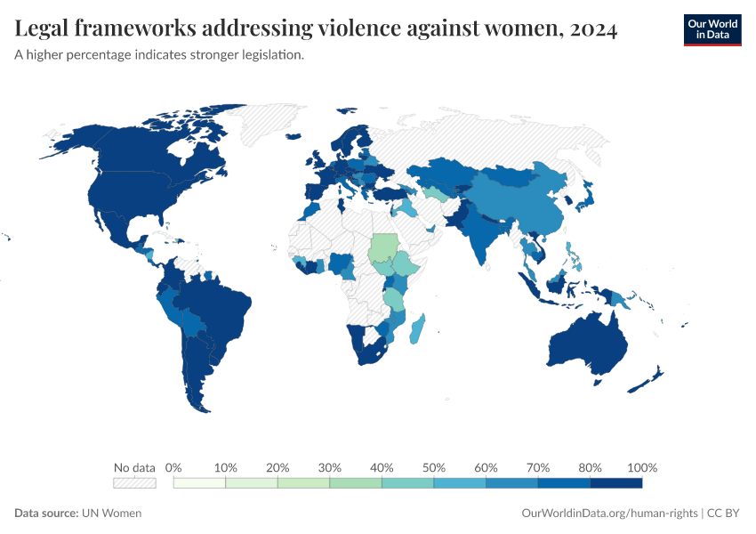 “Data Page: Legal frameworks addressing violence against women”. Our World in Data (2026). Data adapted from UN Women. Retrieved from https://country-profiles-in-search.owid.pages.dev/grapher/legal-frameworks-regarding-violence-against-women [online resource]How to cite this data