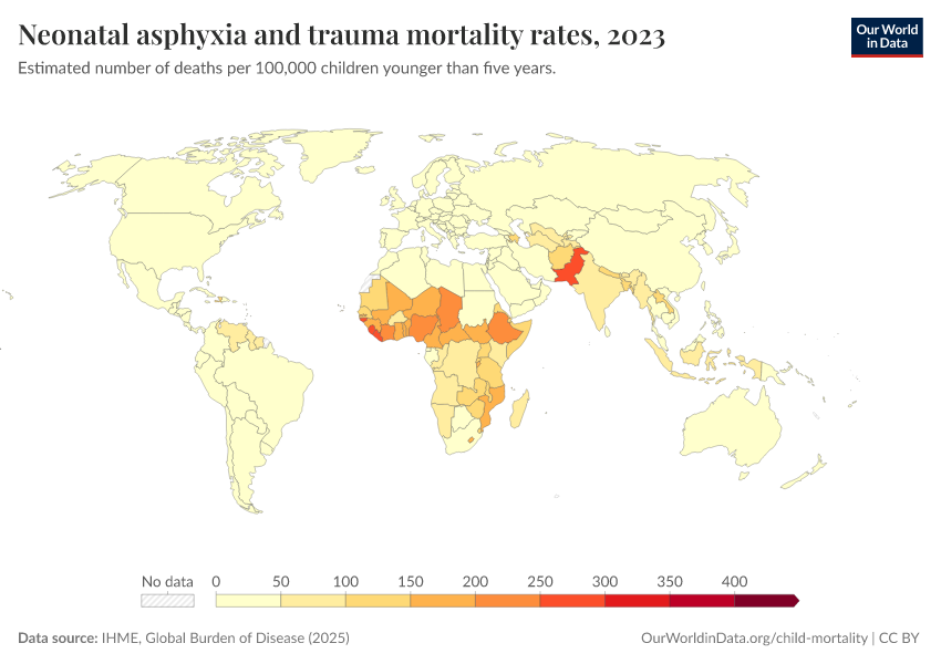 IHME, Global Burden of Disease (2025) – with major processing by Our World in Data. “Neonatal asphyxia and trauma mortality rates” [dataset]. IHME, Global Burden of Disease, “Global Burden of Disease - Deaths” [original data]. Retrieved March 3, 2026 from https://country-profiles-in-search.owid.pages.dev/grapher/mortality-neonatal-asphyxia-and-trauma