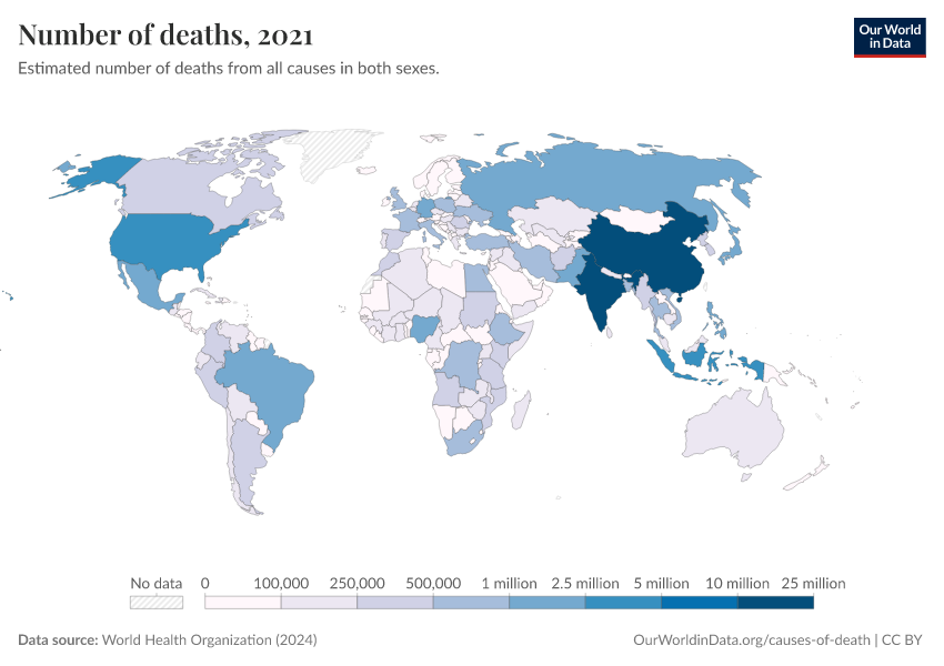 World Health Organization (2024) – with major processing by Our World in Data. “Number of deaths” [dataset]. World Health Organization, “Global Health Estimates” [original data]. Retrieved March 3, 2026 from https://country-profiles-in-search.owid.pages.dev/grapher/number-of-deaths-who