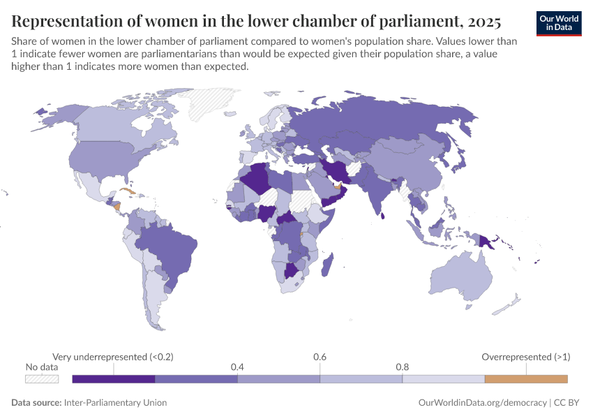 “Data Page: Representation of women in the lower chamber of parliament”. Our World in Data (2026). Data adapted from Inter-Parliamentary Union. Retrieved from https://country-profiles-in-search.owid.pages.dev/grapher/representation-of-women-in-lower-chamber-of-parliament [online resource]How to cite this data
