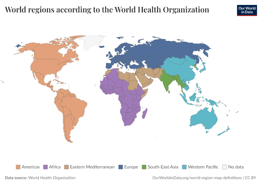 “Data Page: World regions according to the World Health Organization”. Our World in Data (2026). Data adapted from World Health Organization. Retrieved from https://country-profiles-in-search.owid.pages.dev/grapher/who-regions [online resource]How to cite this data