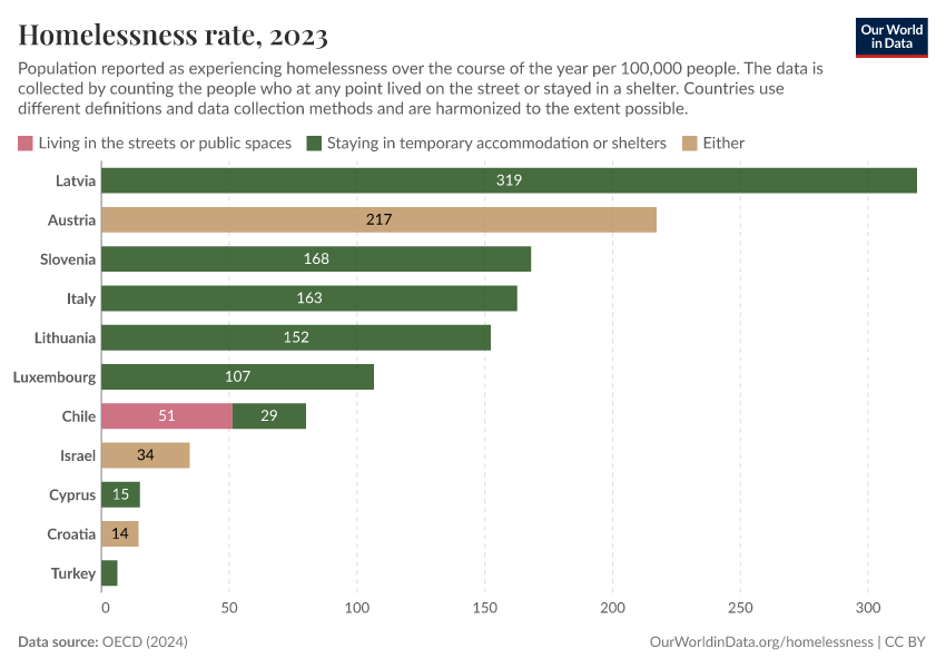 Bastian Herre and Pablo Arriagada (2024) - “Homelessness” Published online at OurWorldinData.org. Retrieved from: 'https://country-profiles-in-search.owid.pages.dev/homelessness' [Online Resource]BibTeX citation