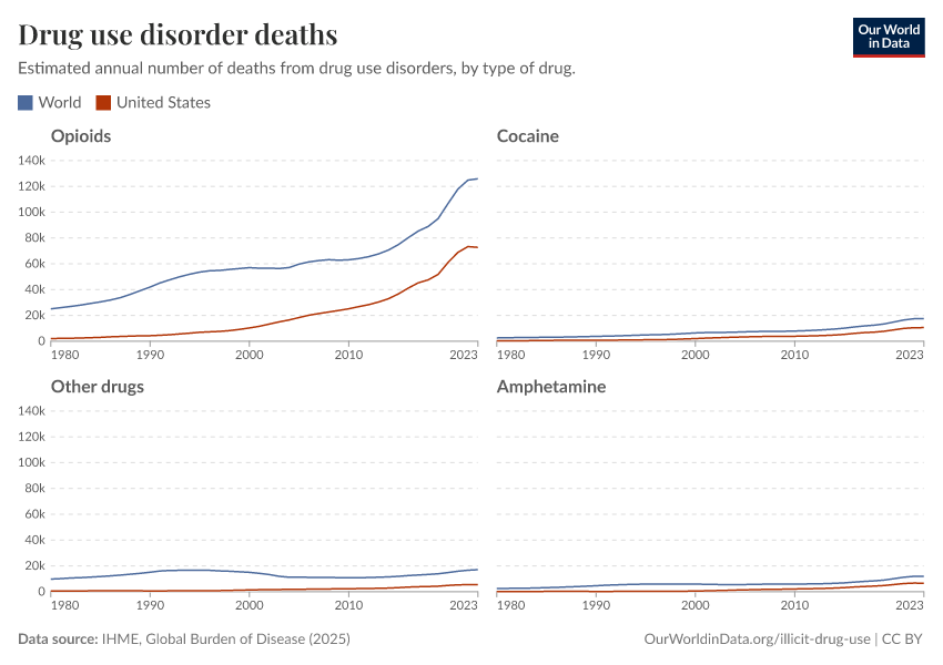 Hannah Ritchie, Pablo Arriagada, and Max Roser (2022) - “Opioids, Cocaine, Cannabis, and Other Illicit Drugs” Published online at OurWorldinData.org. Retrieved from: 'https://country-profiles-in-search.owid.pages.dev/illicit-drug-use' [Online Resource]BibTeX citation