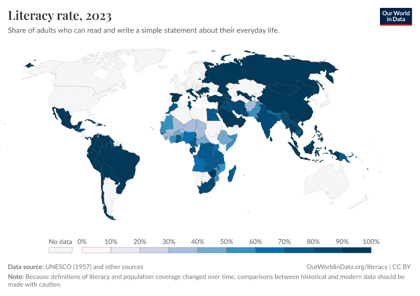 Max Roser and Esteban Ortiz-Ospina (2018) - “Literacy” Published online at OurWorldinData.org. Retrieved from: 'https://country-profiles-in-search.owid.pages.dev/literacy' [Online Resource]BibTeX citation
