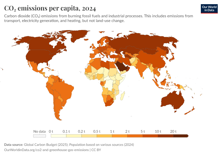 Hannah Ritchie (2019) - “Where in the world do people emit the most CO2?” Published online at OurWorldinData.org. Retrieved from: 'https://country-profiles-in-search.owid.pages.dev/per-capita-co2' [Online Resource]BibTeX citation