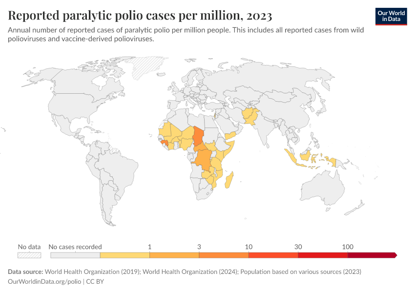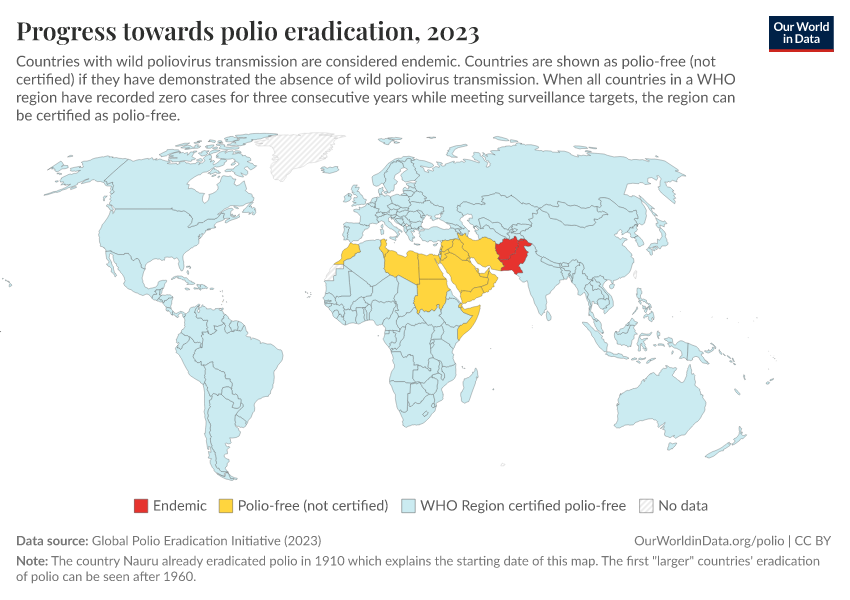 Saloni Dattani, Fiona Spooner, Sophie Ochmann, and Max Roser (2022) - “Polio” Published online at OurWorldinData.org. Retrieved from: 'https://country-profiles-in-search.owid.pages.dev/polio' [Online Resource]BibTeX citation