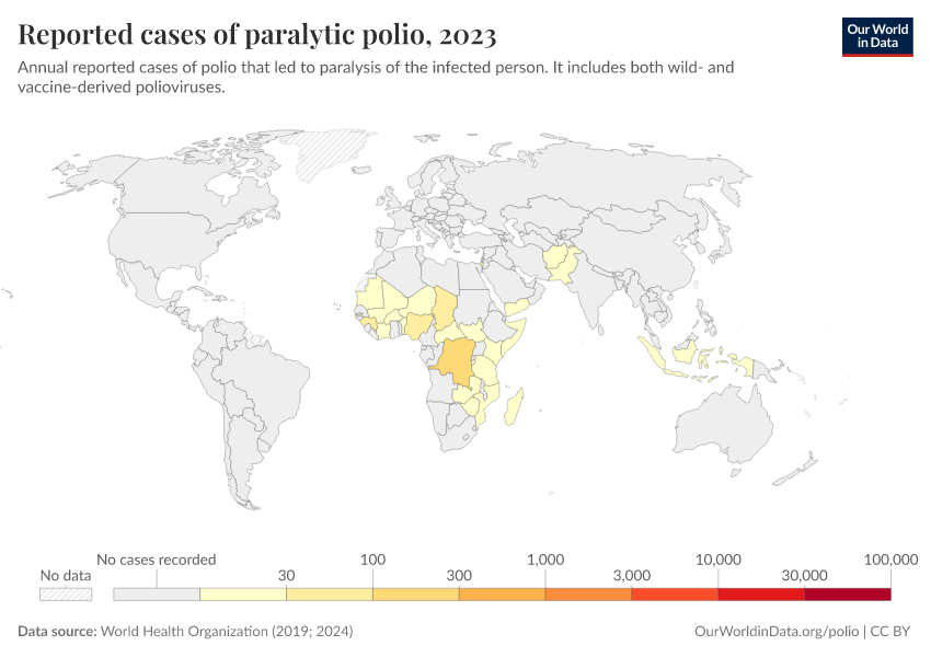 Worryingly, there is the risk that cases are spreading in countries that have been declared free of wild poliovirus. Malawi and Mozambique each reported a case in 2021 and 2022 respectively, after three decades of seeing no cases of wild polio.2