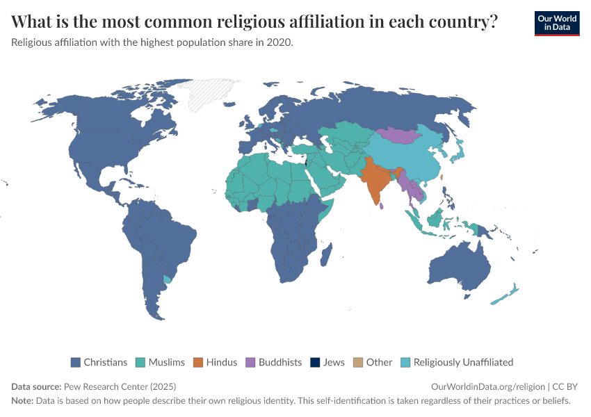 Hannah Ritchie, Lucas Rodés-Guirao, Pablo Arriagada, and Esteban Ortiz-Ospina (2026) - “Religion” Published online at OurWorldinData.org. Retrieved from: 'https://country-profiles-in-search.owid.pages.dev/religion' [Online Resource]BibTeX citation