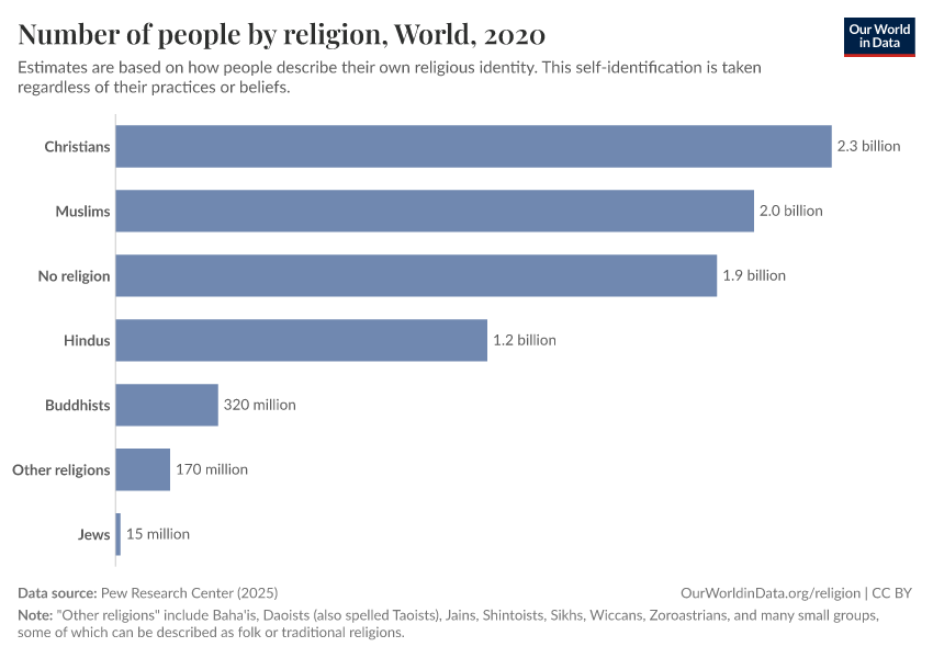 Most of this data comes from the Pew Research Center. Its large global analyses are based on more than 2,700 sources of data, including national censuses, large-scale demographic surveys, general population surveys, and population registers.2
