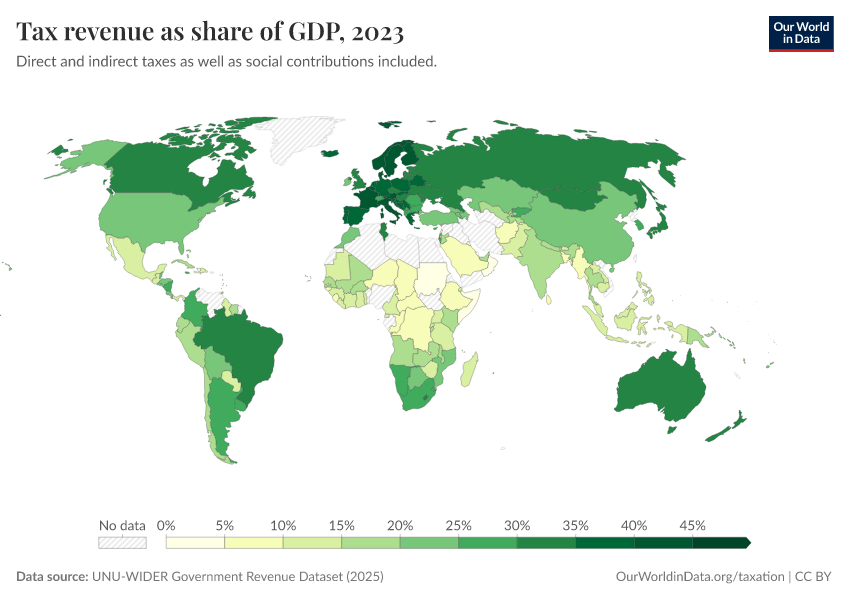 The visualization shows a map of total tax revenues, expressed as a share of GDP.