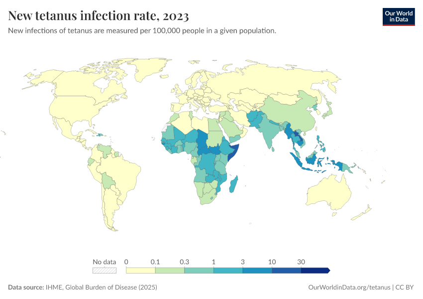 Hannah Behrens, Sophie Ochmann, Bernadeta Dadonaite, and Max Roser (2019) - “Tetanus” Published online at OurWorldinData.org. Retrieved from: 'https://country-profiles-in-search.owid.pages.dev/tetanus' [Online Resource]BibTeX citation